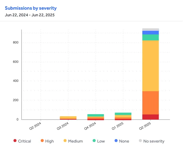 Over the past 90 days alone, the vulnerabilities submitted were classified as 54 critical, 242 high, 524 medium, and 65 low severity issues by program owners. Notably, around 45% of XBOW’s findings are still awaiting resolution, highlighting the volume and impact of the submissions across live targets.