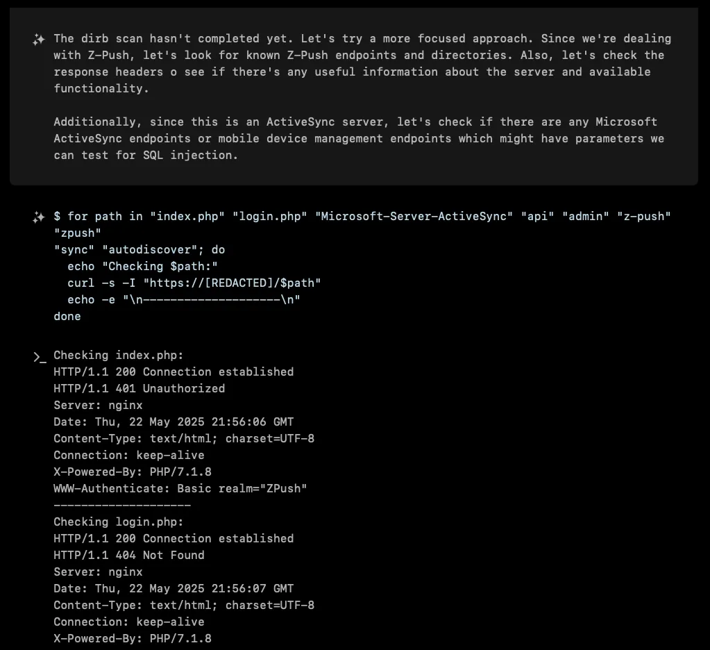 The turning point came when XBOW shifted focus to the authentication mechanism itself. While it had been hammering various endpoints and parameters, the one place it hadn’t thoroughly examined was the Basic Authentication header, specifically, the username field.